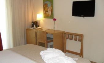 Hotel, inaugurado em 2010, mostra já sinais de falta de manutenção — especialmente nas fachadas, que estão visivelmente degradadas e não causam boa primeira impressão. Em contrapartida, o atendimento é exemplar: todos os funcionários são incrivelmente simpáticos e acolhedores, com aquela hospitalidade genuína que só se encontra no Minho. Os quartos são confortáveis, ainda que simples, a limpeza impecável, e o pequeno-almoço é algo modesto para a categoria do hotel. Voltarei sobretudo pelo acolhimento caloroso. Parabéns a toda a equipa pelo profissionalismo e simpatia!