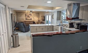 NEWLY REMODELED/DECORATED kitchen, living room, family room, dining room and bar - you'll love everything about this home! It's 4 bedrooms and very spacious with a large play room (with pull out sofa bed), family room, bar and a large 4 season room and beautiful fenced in back yard with dedicated seating area, bar and dining table! Enjoy views of the palm trees and lovely back yard, perfect for outdoor dining, or enjoying your morning coffee or evening cocktail. Adventurers, business travelers, and families are perfect for our home!