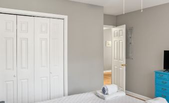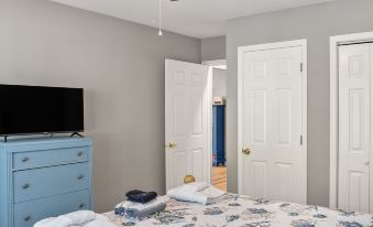 Rest peacefully in our two cozy bedrooms, each featuring a comfortable queen-sized bed and ample storage. The shared bathroom offers a clean and well-appointed space for your convenience.