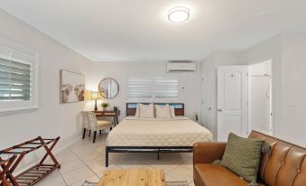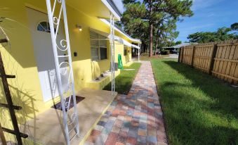 Welcome to this quaint efficiency located in the vibrant small town of Port Salerno which lies along the Port St Lucie River near the inlet to the Atlantic Ocean. Enjoy great waterfront restaurants, bars and shops. Outdoor activities include fishing, kayaking, paddle boarding and much more. Be sure to check out the Manatee Pocket Walk in downtown Port Salerno. Only 10 minutes from the beautiful beaches of South Florida! You will find a spaceous and private back yard with plenty of seating and a fire pit. There is also a utility room with a brand new washer and dryer should you need it. Inside the property you will find a thoughtfully laid out studio style, complete with full size appliances and stocked kitchen with most cooking necessities including coffee maker and coffee. There is also a comfortable queen bed, couch and coffee table in addition to small dining table and a flat screen TV. About pets:Pets allowed: dogs and cats less than 20 lbs per pet (limit one pet total).About checkOut:Check out before 12:00 PM.About children:Children allowed: ages 3-17.About checkIn:Check in after 4:00 PM.About smoking:Smoking is not permitted.About minBookingAge:Minimum age to rent: 18.About events:No events allowed.