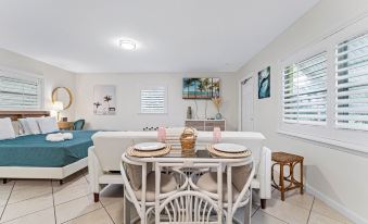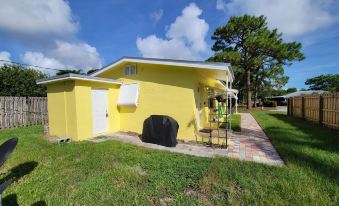 Welcome to this quaint efficiency located in the vibrant small town of Port Salerno which lies along the Port St Lucie River near the inlet to the Atlantic Ocean. Enjoy great waterfront restaurants, bars and shops. Outdoor activities include fishing, kayaking, paddle boarding and much more. Be sure to check out the Manatee Pocket Walk in downtown Port Salerno. Only 10 minutes from the beautiful beaches of South Florida! You will find a spaceous and private back yard with plenty of seating and a fire pit. There is also a utility room with a brand new washer and dryer should you need it. Inside the property you will find a thoughtfully laid out studio style, complete with full size appliances and stocked kitchen with most cooking necessities including coffee maker and coffee. There is also a comfortable queen bed, couch and coffee table in addition to small dining table and a flat screen TV. About pets:Pets allowed: dogs and cats less than 20 lbs per pet (limit one pet total).About checkOut:Check out before 12:00 PM.About children:Children allowed: ages 3-17.About checkIn:Check in after 4:00 PM.About smoking:Smoking is not permitted.About minBookingAge:Minimum age to rent: 18.About events:No events allowed.