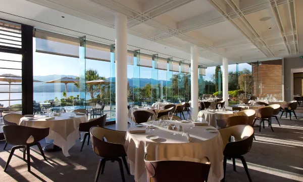J'ai eu l'occasion de diner dans le restaurant gastronomique avec des amis pour un anniversaire. L'endroit est magnifique ( extérieurs ) et le repas en terrasse avec vue mer forcement idyllique. Rien à dire sur le service qui était à la fois attentionné et assez cordial. Les cocktails servis dans le magnifique bar intérieur ( pour échapper aux moustiques !) étaient très réussis. Les vins locaux au verre conseillés lors du repas étaient à la hauteur et à un prix raisonnable. Nous avons choisi le menu complet à 6 plats pour 280 euros ce qui est sur une fourchette haute pour un restaurant doublement étoilé. Les propositions ont été globalement satisfaisantes mais avec un niveau gustatif inégal selon les plats à mon gout. Le plateau de fromage est quant à lui exceptionnel. Nous avons par contre été surpris par le dessert qui se bornait à un gâteau anniversaire aux fruits rouges certes excellent... mais qui remplaçait en fait les desserts servis habituellement... un peu mesquin à ce tarif ! Enfin attention aux digestifs proposés en fin de repas certes exceptionnels mais à un prix prohibitif. En conclusion, c'est une bonne adresse mais j'ai déjà eu l'occasion de déguster à un prix un peu plus modéré des repas supérieurs dans un restaurant doublement étoilé.