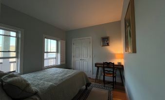 Enjoy a fully equipped kitchen and stylish living space with French doors that open onto a private deck overlooking Provincetown harbor for true indoor-outdoor living. Unwind in a comfortable queen bed equipped with linen sheets and a high-end queen sleeper sofa in the living room. Linens and towels provided along with a collection of books and games, heating/AC, TV, WiFi, shared bike racks, coffee maker (Nespresso). Also included are beach supplies including beach towels, a cooler backpack, beach tent, and beach chairs for treks out to Herring cove beach. Note: the parking space is a 10 min walk away but there is a loading zone right in front for convenient luggage drop off. In addition, as with other properties near Commercial street, recycling comes by early every morning so we recommend sleeping with windows closed and AC on if you're a light sleeper! Unfortunately no pets allowed.