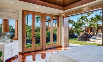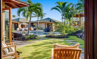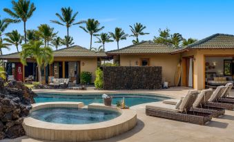 Escape to Hale Mele, an extraordinary luxury residence situated within the exclusive, gated community of Champion Ridge on the radiant South Kohala Gold Coast. Recognized by Condé Nast Traveler as one of 2024’s Top 27 Family-Friendly Short Term Rentals, this refined, single-level Polynesian-style estate spans nearly 4,000 square feet, offering an exceptional blend of island elegance, modern comfort, and breathtaking natural beauty.