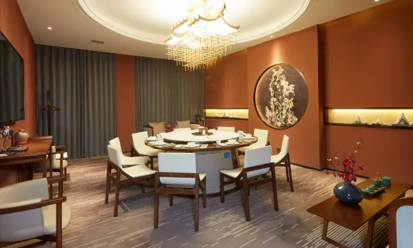 The hotel seamlessly blends tradition with modernity. Its elegant Chinese courtyard features pines and stones reflected in the water, creating a poetic scene. Guest rooms are thoughtfully designed with warm wooden tones and contemporary Chinese elegance, offering a cozy retreat. At the restaurant, savor local delicacies, or unwind with tea and pastries in the lounge while soaking in unhurried moments.