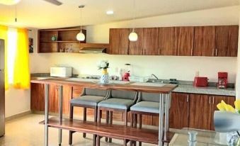 New apartment, recently built on the second level, fully furnished, It has a bedroom with a king size bed, fan, t. v., with netflix, a / c, closet, full bathroom, living room with sofa bed, dining room, utility room, balcony, kitchen equipped with stove, coffee maker, blender, toaster, refrigerator, washing machine, microwave with all cooking utensils. with hot water, gas and Internet.