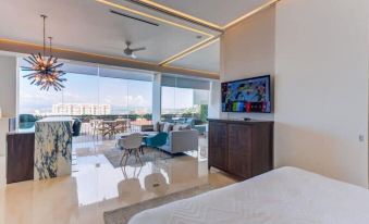 Living Area: The Pier 57 flexible floor plans allow for creating a welcoming and comfortable environment to accommodate your specific vacation situation. With retractable walls for bedroom privacy, and automatic blinds for sleeping comfort, the 2 bedroom 2 bath condo easily converts to an ultra-spacious loft-like space with expanded living areas for your enjoyment.