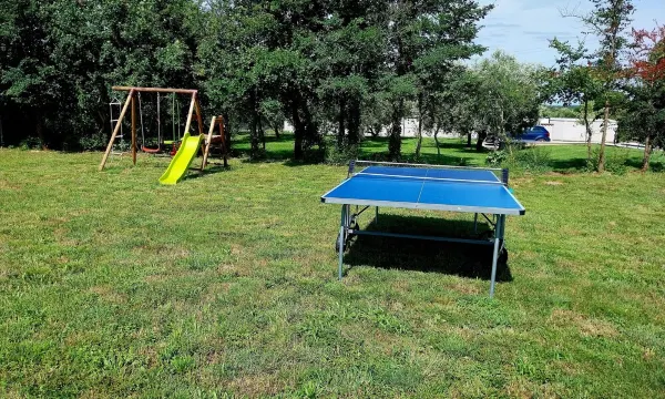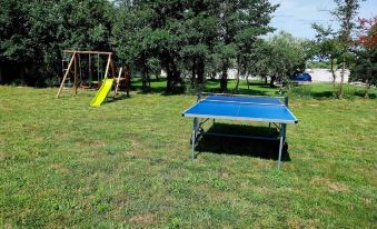 In the outdoor area there are deck chairs, a swing, an umbrella for rest, barbecue, table tennis, parking space.