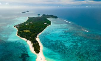 JSK Mantanani Island Resort is a luxurious, serene island sanctuary on Mantanani Besar, featuring 82 elegantly designed villas and rooms nestled among white sandy shores and turquoise waters, with full-board packages that include return boat transfers. Guests can immerse themselves in marine adventures like snorkeling, diving and kayaking, unwind at five distinct F&B outlets (Waterfront Restaurant, Beach Hut, Aramaiti Sports Bar, Aramaiti Food Street and Beach Bar), and indulge in holistic wellness at the spa offering Borneo-inspired massages and body treatments. With its swimming pool, warm island hospitality, and a tranquil Lighting Garden to explore after dark, the resort delivers an inviting blend of adventure, relaxation and nature.