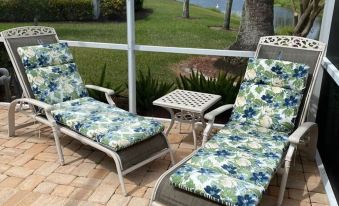 The home is updated and has a new lanai. I love the tropical decor that is throughout the home. I love the outdoor pool area it has plenty of seating and overlooks the canal. The home is very comfy.