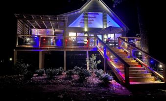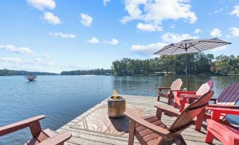 The Fish Camp sleeps up to 12 comfortably with a total of 4 bedrooms and 4.5 bathrooms – with multiple renovations, new fixtures & hardware, updated lighting, and fresh interior paint. The main A-frame cabin (Bluecat Cabin) provides a large main-floor primary suite with King bed + full bath (with smart TV), second-floor primary bedroom with King bed + full bath, powder room for your convenience, great room with towering, vaulted ceilings and full entertainment setup, kitchen that is super well-stocked with custom cabinets and granite countertops, and massive + unimpeded windows throughout for stunning, big-water lake views from the entire house. Adjacent to and just steps away from the main cabin, you'll find the cottage (Shellcracker Cottage), which is absolutely perfect for those additional guests that might need a more private and quiet setting. This space exudes a very vintage charm about it and like the main house, has all the amenities one might want - including 2 Queen beds with wood-paneled headboards, kitchenette area (with sink, mini refrigerator, coffee maker, microwave, & accessories), full bath, and comfy lounging/sitting area with a smart TV + desk setup. Guests can also enjoy the loft above the garage (Largemouth Loft), which has some additional fun entertainment features such as a Lounge & Co Crash Foam Pillow and Roku 4K Streambar; this area includes two full-size daybeds, kitchenette area (mini refrigerator, coffee maker, microwave, & accessories), full bath, and another spacious lounging/sitting area with a smart TV + desk setup.