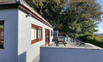 Fantastic views from the whole property but especially from the roof terrace where you can see as far as Harlech 15 miles away (on a clear day). Enjoy a hot outdoor shower after your day out and relax on the terrace, a sun trap even in February. Balcony with hot tub, outdoor cooking area. Free internet access. Boules court suitable for all ages.