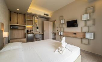 The hotel saves on everything: a lack of staff (we always see the same lady at reception, she obviously works alone and without days off), the room is small, there is only one (!) hook for 3 towels in the bathroom, hangers... it looks like all members of staff were obliged to to bring some hangers from home (see the photo), only one chair, etc. The wardrobe is low, it is impossible to hang even a short dress (see the photo). The safe is not secured and could be just taken away under the arm. It is locked and unlocked with a key, and there is a room number on the key, presumably to make thief's life easier. The bathroom's door is made by glass, and there are two glass windows in the entrance door, so it is a lot of light in the room all the night. The air condition is very noisy and the soundproof is poor. We stayed in the room with sea view, and technically it was true, but actually it was mainly pool view. The hotel doesn't have its own beach and the nearest public beach is terrible (you have to take a drink, but there is no WC there, so all the people must pee in the sea as there are no another options). In conclusion should I write something positive. The lady at reception is very very friendly, there is more then enough light in the room, the Internet connection is very fast, the quiet surround.