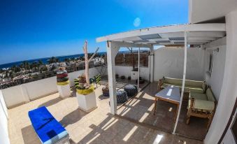 Enjoy an amazing Red Sea view from your one-bedroom rooftop apartment with an equipped kitchen, dining area, and private terrace for sunrises. You will have complete privacy to use the apartment including a private terrace with sea view. The only shared area is the stairs. You can come and go from the building whenever you like!