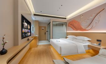 全新的酒店,硬件很好,智能窗簾、馬桶,格力的中央空調,投影大屏可以看電視回看也可以看很多免費電影。除了附近沒有玩的外,性價比非常高。