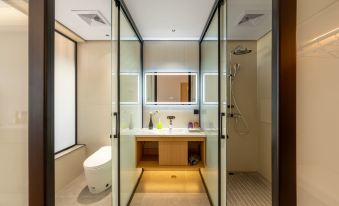 靠近高速路口,周圍有餐廳和早餐,位置方便。我們到時已經很晚了,多虧老闆我們絲滑入住。房間設計人性化,非常乾淨,設施都是智能的。物超所值