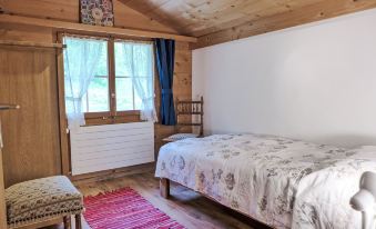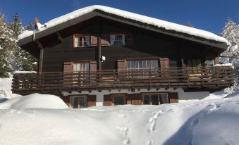 Child friendly, cosy, comfortable chalet "Chalet Kibou", 1'660 m a.s.l., 3 storeys. 2 apartments in the property. On the outskirts, in a quiet, sunny, elevated position on a slope, 20 m from the edge of the forest, 20 m from the stream. Private: natural state property, natural garden, lawn for sunbathing. Terrace, garden furniture. In the house: central heating system. Motor access to 300 m from the house. 180 m steep footpath to the house. Parking (for 2 cars). Grocery 3.5 km, bus stop 300 m, railway station "Visp" 10 km. Chair lift 1 km, slopes 500 m, ski rental 2 km, ski school 2 km, children's ski school 2 km. Well-known ski regions can easily be reached: Bürchen- Moosalp. Please note: baby equipment on request. Groups of teenagers on request only. In case of good snow conditions, the house is accessible on skis. 7-room apartment 200 m2 on 2 levels, on the upper floor. Rustic and cosy furnishings: open living/dining room with winter garden with open-hearth fireplace and satellite TV. Exit to the balcony. 2 rooms, each room with 2 beds (90 cm, length 200 cm). Open kitchen (dishwasher, 4 ceramic glass hob hotplates, toaster, kettle, electric coffee machine, raclette grill, fondue Set (cheese)) with dining table. Sep. WC. Top floor: 2 rooms, each room with 2 beds (90 cm, length 200 cm). 2 rooms, each room with 1 bed (90 cm, length 200 cm). Shower/WC. Large balcony, patio. Terrace furniture, deck chairs, conservatory. Marvellous panoramic view of the mountains and the valley. Facilities: children's high chair, baby cot for up to 2 year olds (extra), logs (free). Internet (WiFi). Parking (2 cars). Please note: non-smokers only. Smoke alarm, fire extinguisher.