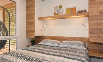 Krnica 22 km from Pula: Ideal choice for guests who seek peace, relaxation and privacy. Good starting point for daily trips to Istrian attractions or intimate beaches. Bungalow "Klen 2", built in 2018. In the hamlet Beloći 7 km from the centre of Krnica, 7 km from the centre of Barban, 26 km from the centre of Rabac, in a quiet, sunny position, 4 km from the sea, 4 km from the beach. For shared use: barbecue, children's playground (slide, swing). Private: property 200 m2, garden with wildlife garden. In the house: internet access. Parking at 15 m. Shop 2 km, supermarket 7 km, restaurant 3 km, bus stop 1.8 km, pebble beach 4 km, rocky beach 4 km, public bathing area 16 km. Riding stable 3 km, walking paths from the house 50 m, cycle lane 100 m. Nearby attractions: Adventure park 6 km, Medieval theme park 15 km, NP Brijuni 25 km. Please note: airfield 20 km from the property. For shared use: parking at 15 m, 2 bicycles (included in price). The owner can arrange excursions (on request, extra). 3-room bungalow 31 m2. Living/dining room with satellite TV (flat screen), air conditioning. Exit to the terrace. 1 room with 1 french bed (160 cm, length 200 cm). 1 room with 2 beds (80 cm, length 200 cm). Open kitchen (2 hot plates, microwave, freezer, electric coffee machine). Shower/bidet/WC. Forced-air heating. Terrace 32 m2, roofed. Terrace furniture, deck chairs. View of the garden. Facilities: baby cot (extra), hair dryer. Internet (WiFi, free). Parking (roofed, 1 car) at 15 m. 1 small pet/ dog allowed.