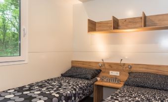 Krnica 22 km from Pula: Ideal choice for guests who seek peace, relaxation and privacy. Good starting point for daily trips to Istrian attractions or intimate beaches. Bungalow "Klen 1", built in 2018. In the hamlet Beloći 7 km from the centre of Krnica, 7 km from the centre of Barban, 26 km from the centre of Rabac, in a quiet, sunny position, 4 km from the sea, 4 km from the beach. For shared use: barbecue, children's playground (slide, swing). Private: property 200 m2, garden with wildlife garden. In the house: internet access. Parking at 15 m. Shop 2 km, supermarket 7 km, restaurant 3 km, bus stop 1.7 km, pebble beach 4 km, rocky beach 4 km, public bathing area 16 km. Riding stable 3 km, walking paths from the house 50 m, cycle lane 100 m. Nearby attractions: Adventure park 6 km, Medieval theme park 15 km, NP Brijuni 25 km. Please note: airfield 20 km from the property. For shared use: parking at 15 m, 2 bicycles (included in price). The owner can arrange excursions (on request, extra). 3-room bungalow 31 m2. Living/dining room with satellite TV (flat screen), air conditioning. Exit to the terrace. 1 room with 1 french bed (160 cm, length 200 cm). 1 room with 2 beds (80 cm, length 200 cm). Open kitchen (2 hot plates, microwave, freezer, electric coffee machine). Shower/bidet/WC. Forced-air heating. Terrace 32 m2, roofed. Terrace furniture, deck chairs. View of the garden. Facilities: baby cot (extra), hair dryer. Internet (WiFi, free). Parking (roofed, 1 car) at 15 m. 1 small pet/ dog allowed.