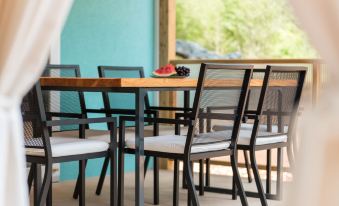 The simple tiny house is well designed and equipped with everything you need. The WiFi works well. The covered wooden veranda is beautiful and spacious. The fridge and freezer are also large. Shower and sink with instantaneous water heater, so enough warm