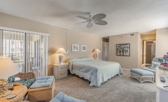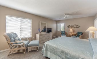This unit offers a spacious floor plan, including a full kitchen with granite countertops, and is fully stocked with utensils as well as a washer and dryer for your use. An eating area for four leads you into the large living room that is comfortably furnished including a flat screened television. The outdoor balcony provides beautiful gulf views, perfect for a relaxing and unwinding. The master bedroom has a king sized bed and a small sitting area. The second bedroom has a queen and one twin bed, updated June 2017. This is a perfect retreat for up to five people maximum. Both bathrooms are spotless and SunHost makes certain that every need is met, including fresh linens, extra pillows, and plenty of towels are fully stocked. This property also includes free WIFI.