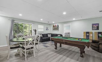 In our downstairs living room, you'll find a dedicated recreational area, complete with a pool table, ping pong table, and cornhole! Engage in lively tournaments with your loved ones, showcasing your skills and enjoying friendly competition.