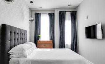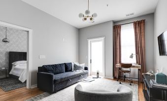 This spacious 700 square foot one-bedroom with a modern, open floorplan, comes complete with a Queen bed and restful pull-out sleeper sofa. Relax with free, high-speed WiFi, full assortment of bath products, plush top mattress and modern tiled rainfall showerhead. Your kitchen comes loaded with all pots, pans, cooking utensils and every dish you'll need. Relax on your private balcony overlooking the charm of our historic neighborhood, enjoy two 40-inch HD Smart TV's, & fully stocked coffee bar to keep you going when you're "on the go."