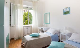 The apartment is located in a quiet, one-way tree-lined street, in one of the most popular and central residential areas of Rimini, next to the beautiful park 'XXV Aprile'. It is on the second floor of a building consisting of six apartments, with a shared garden; it has a reserved and free parking space, in a fenced communal courtyard behind the house; it also has a free garage for any motorcycles and bicycles. Furthermore, there is the possibility to park freely also along the street in front of the house.