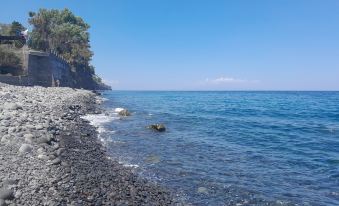 In the living room there is a queen-size bed. The house is livable both in summer and in winter by having a wood-burning stove in the living room and the hot and cold air in the bedroom. The bathroom is large with a very comfortable shower. The garden has a spectacular view, deck chairs and a table to eat under a beautiful pergola. At guests' disposal there is always a well-stocked vegetable garden and seasonal fruit, avocados, mangoes, oranges, lemons, apricots, medlars and figs, to be picked from the trees. Small pool for children or for those who don't want to go to the beach. The 'Praiola' beach, below the house, is not private. It is made up of pebbles of various sizes but is little frequented because public access is very inconvenient. A wonderful terrace with a view of both the sea and Mount Etna will provide you with unforgettable sunsets. The house is well heated, has a fireplace in the living room and a heat pump in the master bedroom. The music of the waves and the smell of the sea will delight your stay. You will find everything you need for the beach in a reed house. In the season of the orange blossom, the citrus blossom, the scent will be irresistible, but each season will surprise you: in winter the oranges are ready, in autumn the mangoes so many summer fruits. Carrubba, the village, is halfway between Catania and Taormina, Giarre is about 5 km away. Etna, the volcano, can be reached in about half an hour and can be seen from the house. Its favourable geographic location, with the motorway just a few kilometres away, makes it easy to reach famous places such as Taormina, Acireale, Catania, Syracuse, Piazza Armerina and to make magnificent excursions to the suggestive 'Alcantara Gorge' and Mount Etna (bring heavy stuff) . I recommend this to families and groups of friends who want to spend a holiday immersed in nature and who want a base from which to discover Sicily and its wonders.About pets:Pets allowed.About checkOut:Flexible check-out available (contact host to arrange).About children:Children allowed: ages 0-17.About checkIn:Flexible check-in available (contact host in advance of arrival).About smoking:Smoking allowed: in designated areas.About events:No events allowed.