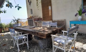 Gite idéalement situé à 5 minutes à pied d'une petite plage avec une très belle vue sur la mer. Le gite est très calme et on peut s'y reposer sur des transats à l'ombre des feuilles d'un plant de vigne de la terrasse ou d'un magnifique laurier rose.