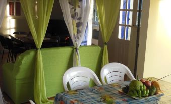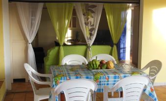 Martinique), comfortable, quiet and safe. Available two double bedrooms, one bedroom with a single bed, all with broken remote controls, a dining room with TV and sofa bed, two bathrooms with hot water and toilets, fitted kitchen and a terrace overlooking the green valley, equipped with a barbecue to enjoy the flavor of fresh products. Parking is also available.