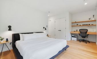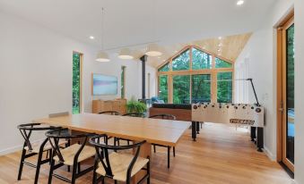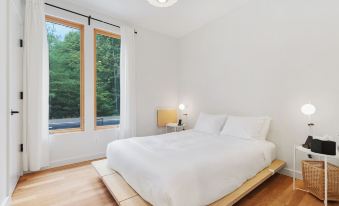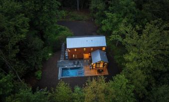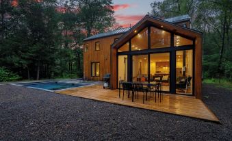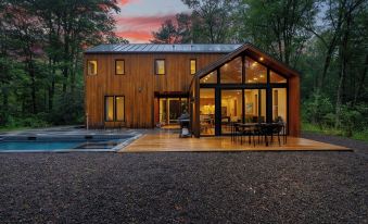 Perched in Upstate New York’s Hudson Valley, Wander Catskills Creek is a modern chalet blending minimalist design with classic French charm. This versatile retreat features soaring vaulted ceilings, a gourmet kitchen, and a glass window wall. Outdoors, enjoy a serene pool, fire pit, and expansive deck, all set against the breathtaking backdrop of the lush forest.