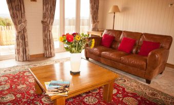 The 18' lounge has panoramic views of the countryside through large glass doors, With comfortable leather sofas and a flat-screen smart TV and DVD player, it is perfect for relaxing.