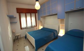 Elegant villa portion with a large private garden just 150 mt from the sea. The accommodation features a spacious 300 m² private garden with a furnished patio, sun loungers and a barbecue. Inside, it consists of two bedrooms, each with a double bed and a single bed, a large living room with an open-plan kitchen and sofa, two bathrooms with shower cabins, and two balconies. The house is equipped with a satellite TV in the living room, a TV in the bedroom, Wi-Fi connection, A/C, washing machine, dishwasher, mosquito nets, microwave, kettle, iron with ironing board, hairdryer, and a private parking space. °Pets are not allowed.