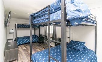 3 bedrooms: 2 bunk beds and 2 queen beds