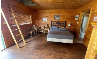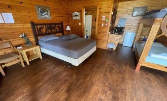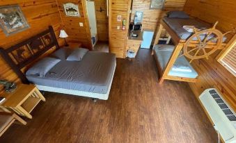 Cabin 52 at Tranquility Bay Resort includes: 1 Queen bed, set of bunk beds, small refrigerator, microwave and coffee pot. Twin bed in loft. Sleeps 5.