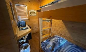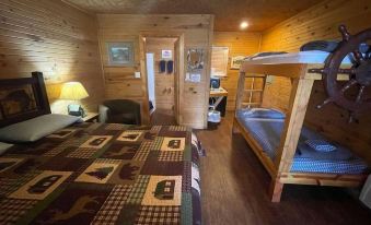 Cabin 15 at Tranquility Bay Resort includes: 1 Queen bed, set of bunk beds, small refrigerator, microwave and coffee pot. Twin bed in loft. Sleeps 5.