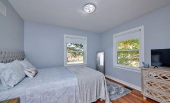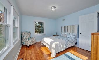 Welcome to my beautiful Farmhouse home! We fully rehabbed this home in 2021 and put in beautiful maple floors with marble and stainless touches throughout! it consists of three bedrooms and three full bathrooms Plus a garage for your use. The upstairs consists of two spacious bedrooms with queen size beds and two full bathrooms with one attached master bath.