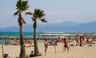 The nearest airport is Perpignan–Rivesaltes Airport, just about 29 mins from hotel by car (25.0 km) away.Which airport is closest to Les marines du Roussillon n 32 swimming pool tennis boules court 100m from the sea?