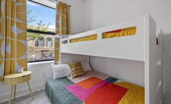At Juniper, we set you in motion for sweet dreams and a sound sleep by using only high-quality bedding and linens. The primary bedroom is lush and plush, while the second bedroom features colorful everything and a bunk bed combo with both a twin bed and a full bed.