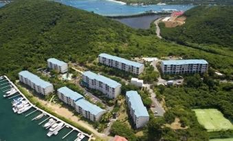 Just outside the building, only 100 ft. away is one of two swimming pools on the property. There is a restaurant and bar just a 3 minute walk from the unit. Sapphire beach is just down the hill (7 minute walk). Red Hook with it's many bars and restaurants, grocery store and ferry to St. John is just 3 minutes away by car or taxi.