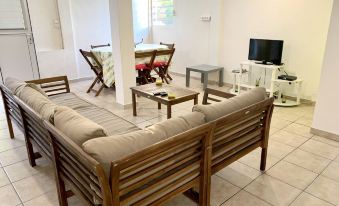 Composed of 3 air-conditioned and carefully decorated bedrooms, a large living room with a dining table, a living room, a large fully equipped kitchen and a bathroom with shower, this apartment has a large garden where a rare tree promotes this fruit called Cachiman (hence the name of the villa).