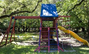 This peaceful, five-acre gated estate is located in the heart of San Antonio. Hundreds of surrounding oak trees will make you feel like you are in the Texas Hill Country. The estate is family friendly and includes a swimming pool, tennis / pickleball court, basketball court, pool table, bocce ball set and playscape. Whether you are looking for a relaxing retreat or plenty of room to let the kids run, play, and swim, The Ambassador House and its sprawling grounds will fit anyone's needs.