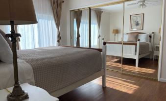 Our guest house host resides in the downstairs apartment. There is no common area or entry. Please respect her privacy by not venturing to the downstairs patio. It is much appreciated to keep noise down after 11 pm. We hope you enjoy your stay!About pets:Pets allowed: dogs and cats less than 50 lbs per pet (limit 2 pets total).There is a deposit for Dogs.About checkOut:Check out before 11:00 AM.About children:Children allowed: ages 0-17.About customRules:Co-Host occupied apt. downstairs. Please do not enter downstairs patio area. Signs posted..About checkIn:Check in after 3:00 PM.About smoking:Smoking is not permitted.No Smoking in House.About minBookingAge:Minimum age to rent: 21.About events:No events allowed.
