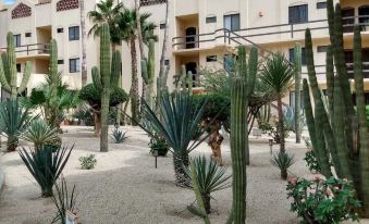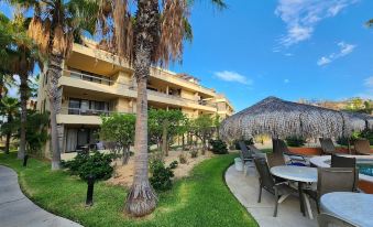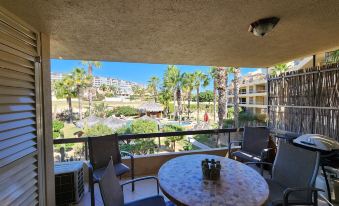 Your cozy getaway awaits in San José del Cabo at this bright, airy condo. With 1 bedroom featuring a king bed, this wonderful property is perfect for a romantic escape or solo adventure. You'll find all the essentials you need at this peaceful and centrally-located place. Walk 5 - 10 mins to beach, restaurants, shops. No need for car. One bedroom, second level. Corner unit. Comfy and ready for work or rest. Internet WIFI for work or streaming. Well equipped kitchen. Faces northwest. Roomy, shaded patio faces lovely sunny pool and garden area alongside the golf greens. Gated community of Club la Costa.