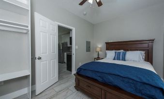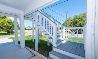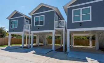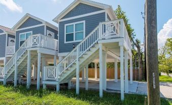 Charming 1 bedroom 1 bath cabin with full kitchen and washer/dryer in San Leon, TX. Includes a queen size bed in bedroom and a queen size sofa bed in living room. Sleeps 4 comfortably. Tile floors throughout. Includes covered parking for 2 cars below the unit.