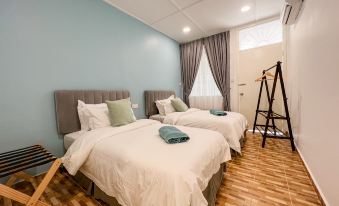 4 bedrooms: 3 single beds 2 queen beds and 1 king bed | 1 living room