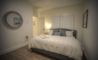 In the master bedroom, a luxurious king bed awaits your slumber and in the guest bedroom, there is an equally comfy queen bed. For parties over 4, the sofa transforms into yet another queen bed. The Cottage bed linens are of a high quality, with the beds dressed in high thread-count sheets and the comforters and pillows being Claritin Cotton Allergen Barrier Down Alternative.