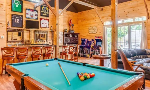 • The Coolest Game Room: Converted from a rustic barn, this space boasts a pool table, foosball, arcade games, and a lounge area with a big-screen TV. It's the ultimate hangout spot for kids and adults alike.