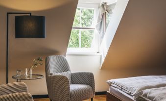 Es gab einfach nichts zu beanstanden und das in allen Bereichen. Größtes Lob für Service und Gestaltung. Das Zimmer hatte eine angenehme Größe, war sehr ansprechend möbliliert. Man hat auch auf beste Materialien (biologisch) geachtet, z.B. beim Teppichboden. Im Bad stimmte alles, sehr gut gestaltet. Der Knaller ist das eingebaute mini-Radio über dem Lichtschalter - sehr originell. Wir waren sehr dankbar, dass wir auch für den Abend einen Tisch bekommen konnten. Das Menue ließ keine Wünsche offen. Groß Überraschung war für uns, dass es noch ab 15:00 Uhr eine Nachmittagsvesper mit Kuchen und herzhaften Schinken gab. Aber eines der highlights war das Frühstück: Das Team der Servicekräfte leistet einen excellenten Job, freundlich, kompetent und schnell. Sehr lobenswert ist das "livecooking" der Eier nach gusto. Kein Rührei in Tüten, wie das heute leider oft gemacht wird. Die Herkunft der Eier, der Brötchen und aller anderen Zutaten war regional und explizit schriftlich ausgewiesen. Und auch alle anderen Rahmenbedingungen waren top: genügend Parkplätze 2 Ladestationen Leifahrräder Regenschirme Weinprobe großzügiges Aussengelände Wie gesagt, es blieben keine Wünsche offen, danke